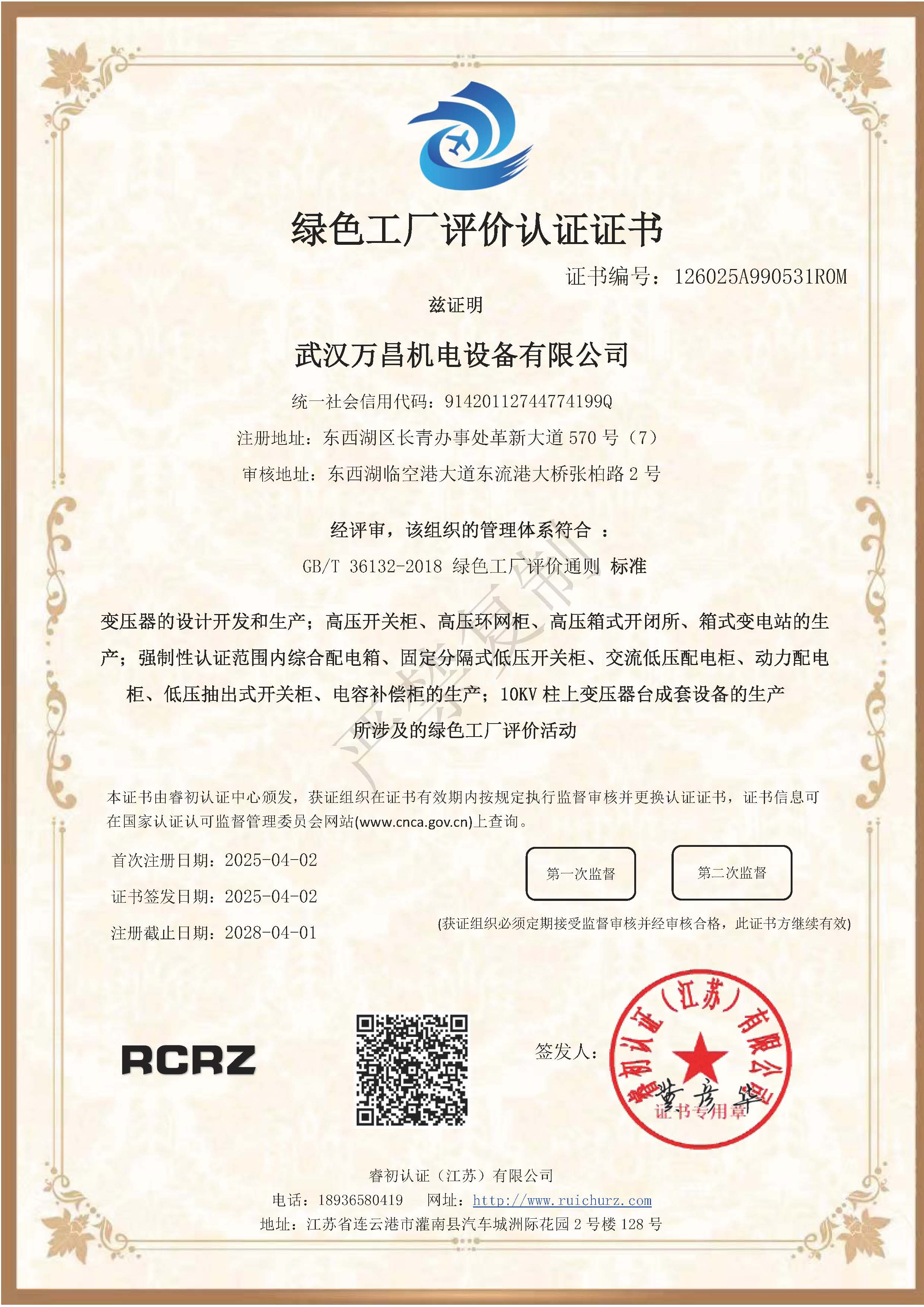 綠色工廠評(píng)價(jià)認(rèn)證證書